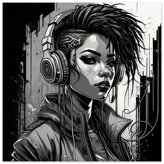 Punk Rock Girl Graff. Black & White -Museum-Quality Matte Paper Poster