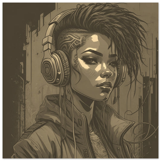 Punk Rock Girl Graff. Brown & White -Museum-Quality Matte Paper Poster