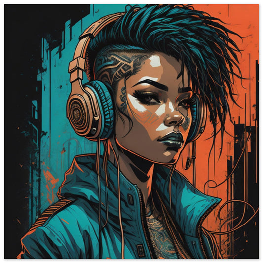 Punk Rock Girl Graff. Orange & Torq. - Museum-Quality Matte Paper Poster