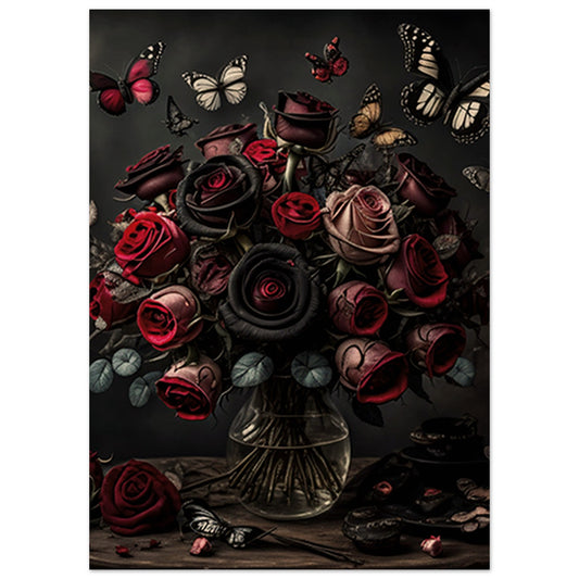 Museum-Quality Matte Paper Poster - Roses and Butterflies